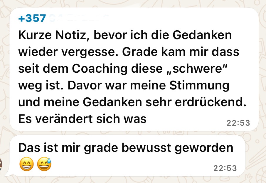 Aktuell geht es mir hervorragend. Bevor ich das Coaching buchte war ich total im Mangel und seit Monaten keinen nennenswerten Umsatz. Du hast sofort erkannt, wo ich ansetzen muss, um meine Ziele zu erreichen: Selbstwert! Durch das 4-monatige Mentoring habe ich 2 große Projekte erhalten, die sehr nahe an meinen Traumkunden sind. Ich verdiene endlich 5-stellig, bin so glücklich und erfüllt, wie nie.