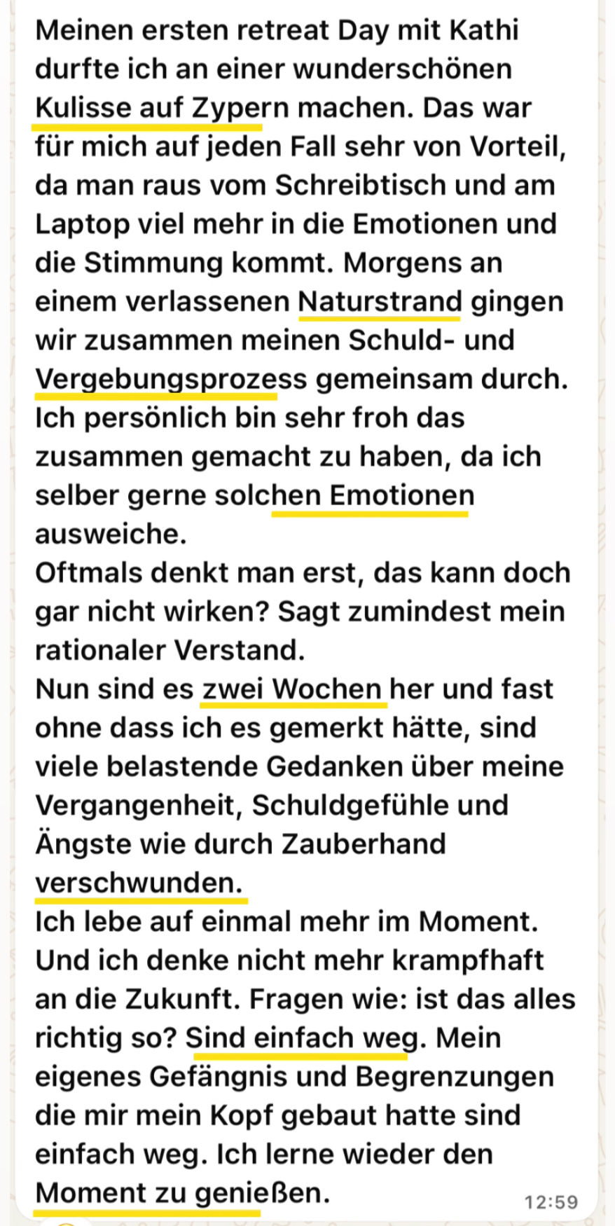 Du hast mich in den 12 Monaten immer wieder an mein Commitment und Umsetzungkraft als MG erinnert. Dabei hatten wir jede Menge Spaß und es sind so tolle Dinge entstanden. Ich kann mit Stolz sagen, dass ich im Zeitraum der Begleitung 38k kreiert habe. Mein Umsatzziel wird dieses Jahr ganz sicher klappen. Ich bin aktuell ausgebucht mit Coachings & Mentorings. Es war auf jeden Fall eines der besten Investitionen, ever. Danke dir für alles.